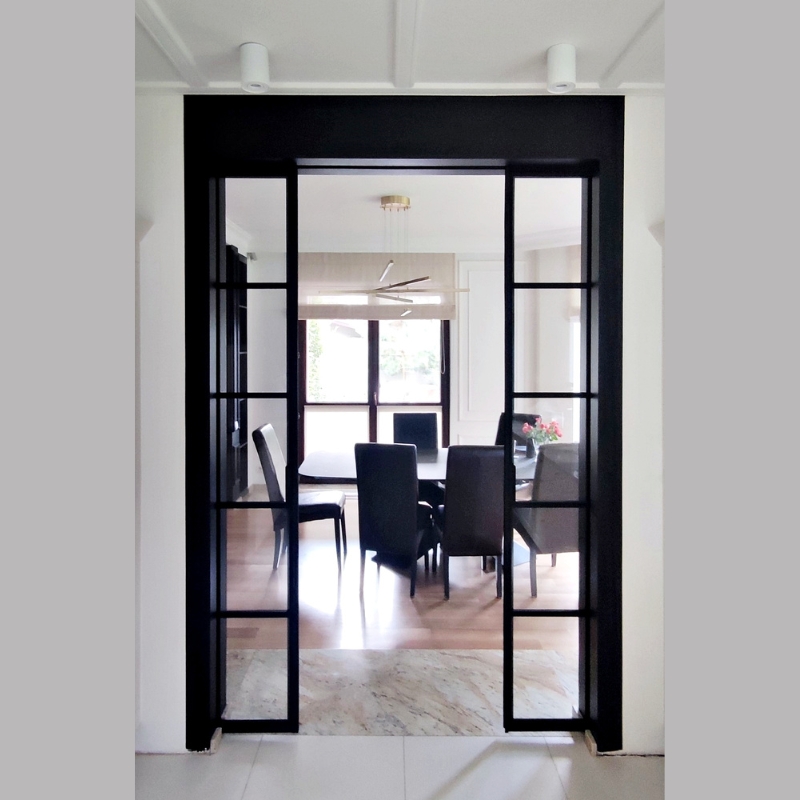 Odkryj elegancję drzwi stalowych z szkłem, utrzymanych w loftowym stylu, opartych na nowoczesnych zawiasach.